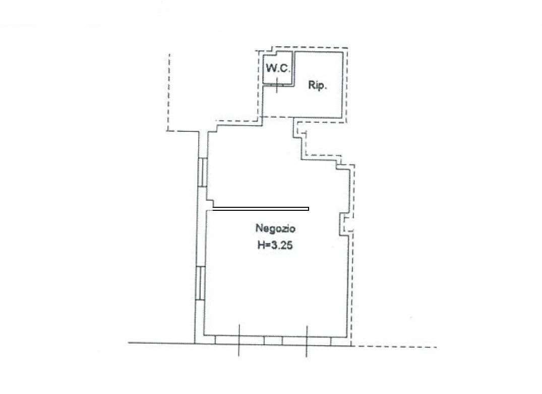 Composizione: Ingresso da due vetrine, su due vani con ripostiglio e servizio igienico.